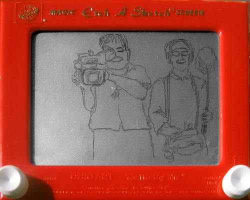 Oregon Art Beat came out to Last Thursday to film me for a future story, and I did a quick sketch of Greg the cameraman and Bill the sound guy.